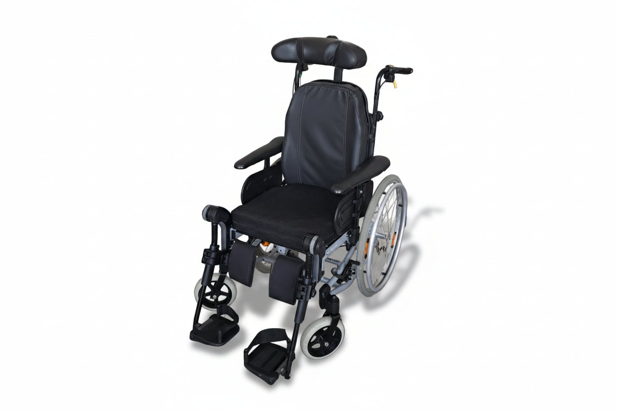 Vhodný pro uživatele s hmotností až do 135kg. Mezi klíčové specifikace patří sklopná opěradla až do 30°, nastavitelný úhel sedáku, nastavitelné opěrky nohou pro větší pohodlí a rychloupínací nápravy určené pro úlevu od tlaku a polohování.