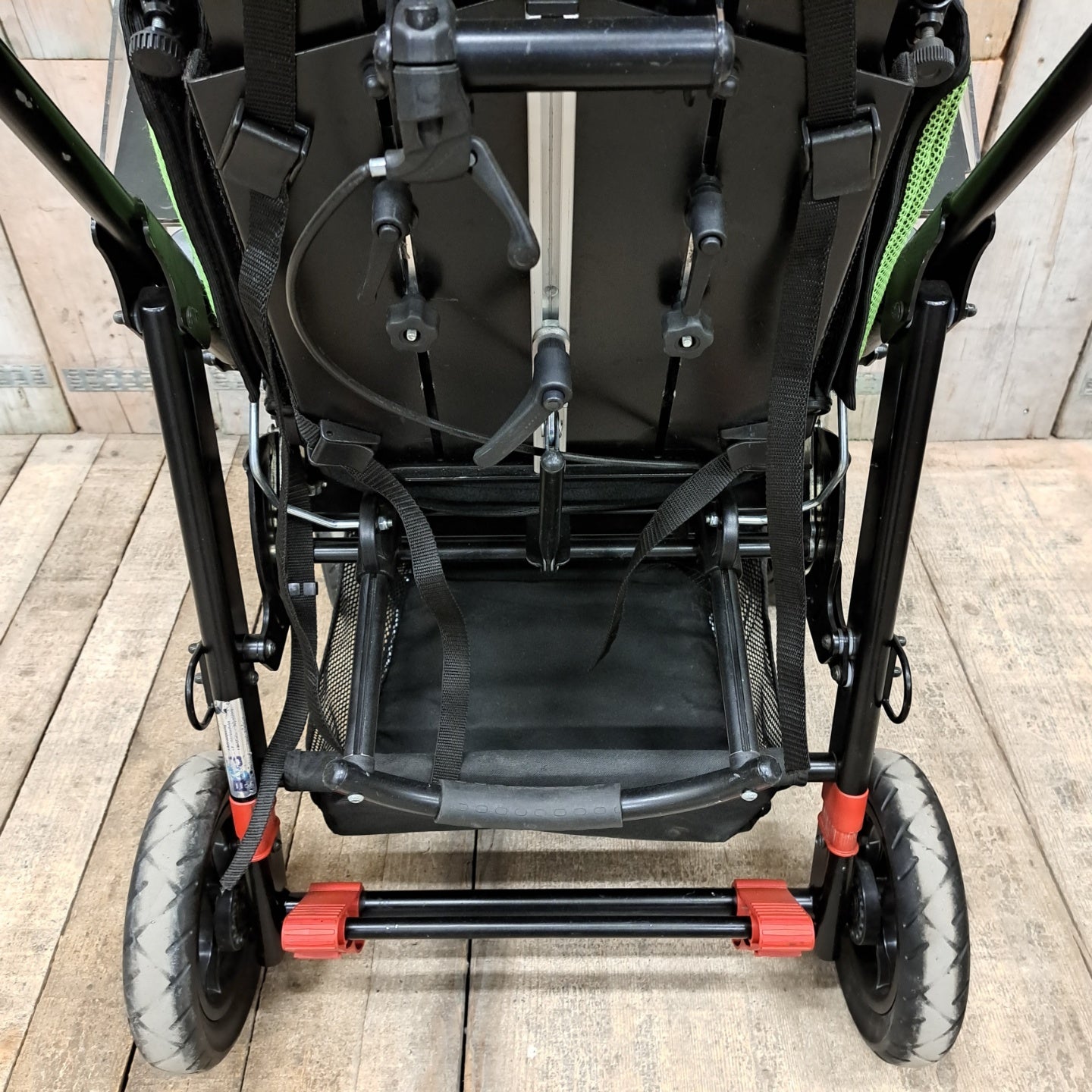 VÝBAVA - úhel zad, sedu, nohou a výška nohou. Pětibodové pásy. Parkovací brzda, stolek odklápěcí, madlo pro doprovod nastavitelné, odpružení.