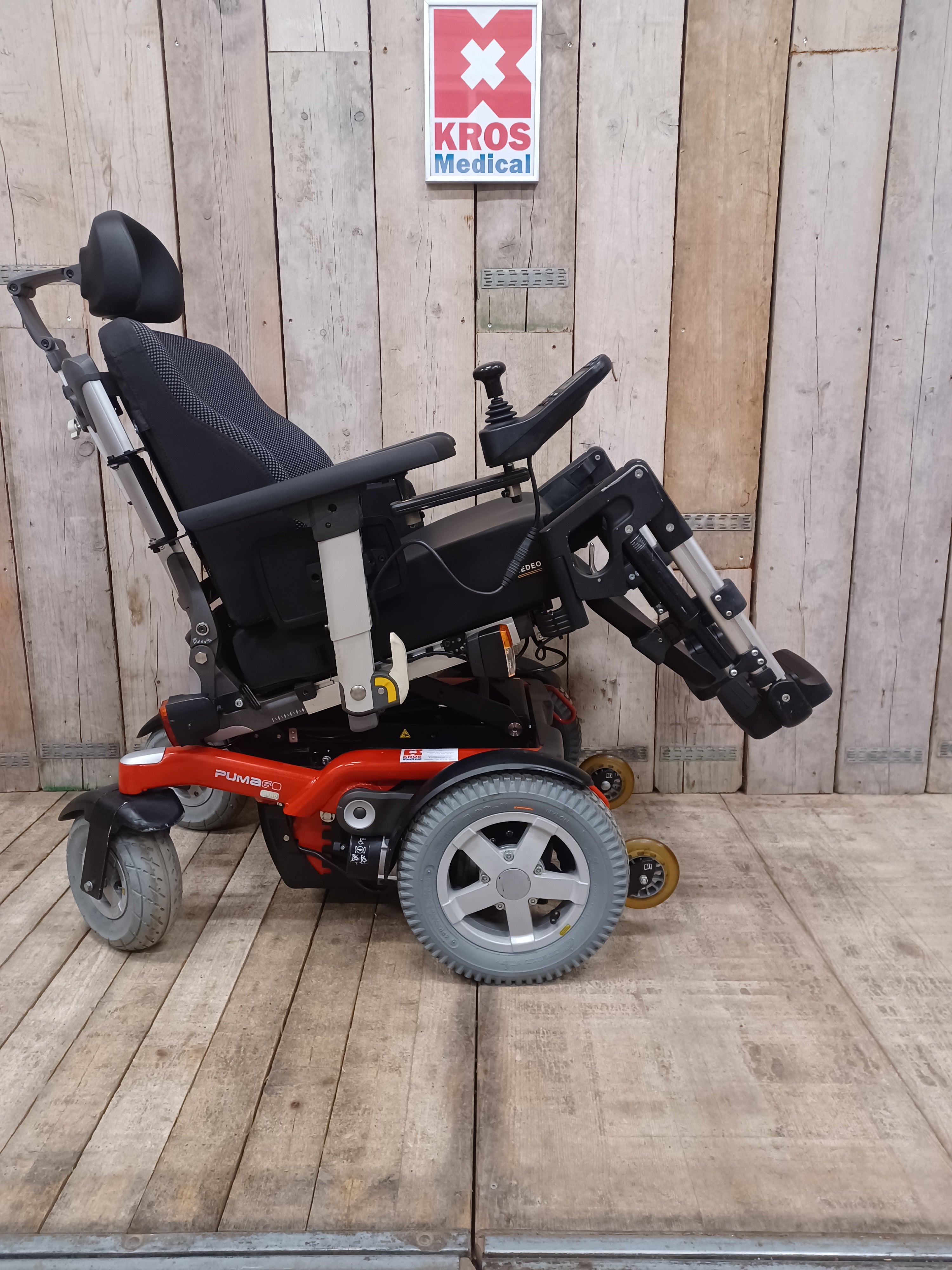 HANDICARE Puma 60 G - zánovní - je robustní, všestranný elektrický invalidní vozík pro použití v interiéru i exteriéru, který dosahuje maximální rychlosti 10km/h, má nosnost 160kg a je vybaven pokročilým sedadlem SEDEO pro větší pohodlí s odpružením Full Track a elektrickým polohováním úhlu sedu a polohováním úhlu opěrky nohou. Vozík má výškově nastavitelné područky/ odklápěcí, úhel zad lze manuálně upravit pomocí univerzálního klíče nebo úplně sklopit k sedu pro snadný převoz v autě.
