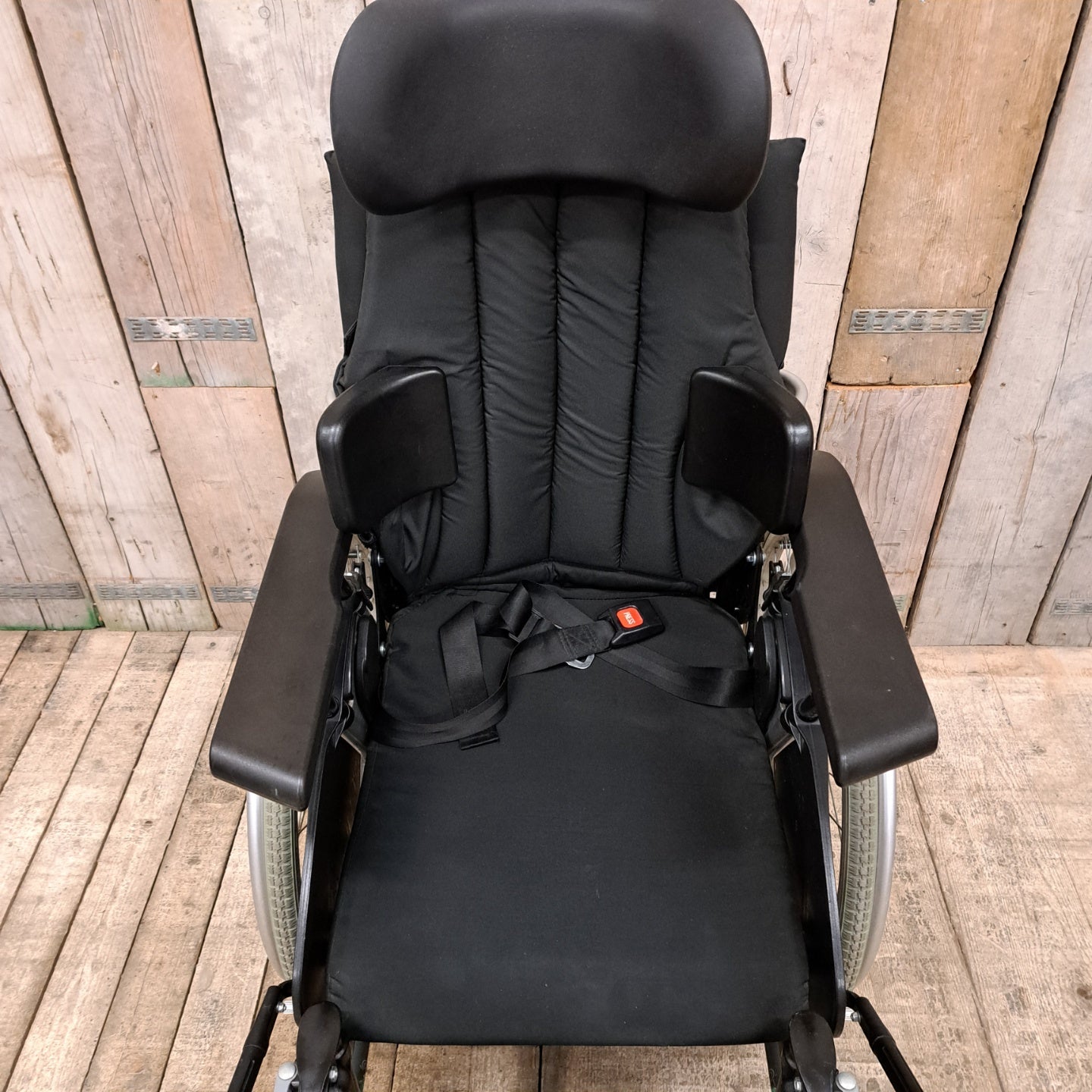 výbava -opěrka hlavy, boční bederní opěrky pro držení těla, výškově a úhlově nastavitelné podnožky, výškově nastavitelné područky, 2ks balančních koleček, polstrovaný sed a záda, madla pro doprovod nastavitelná